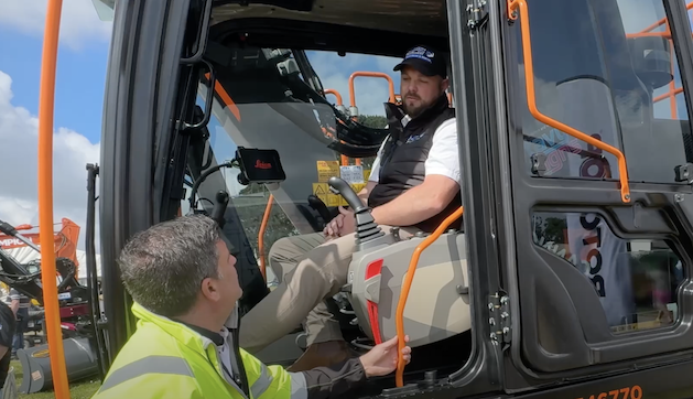 Peter meets with Jake Walley of Hitachi Construction Machinery (UK) to discuss the factory fitting of Leica Geosystems 3D machine control, Xwatch Safety Solutions and tiltrotators from Rototilt UK Ltd, Steelwrist and Engcon UK Ltd
